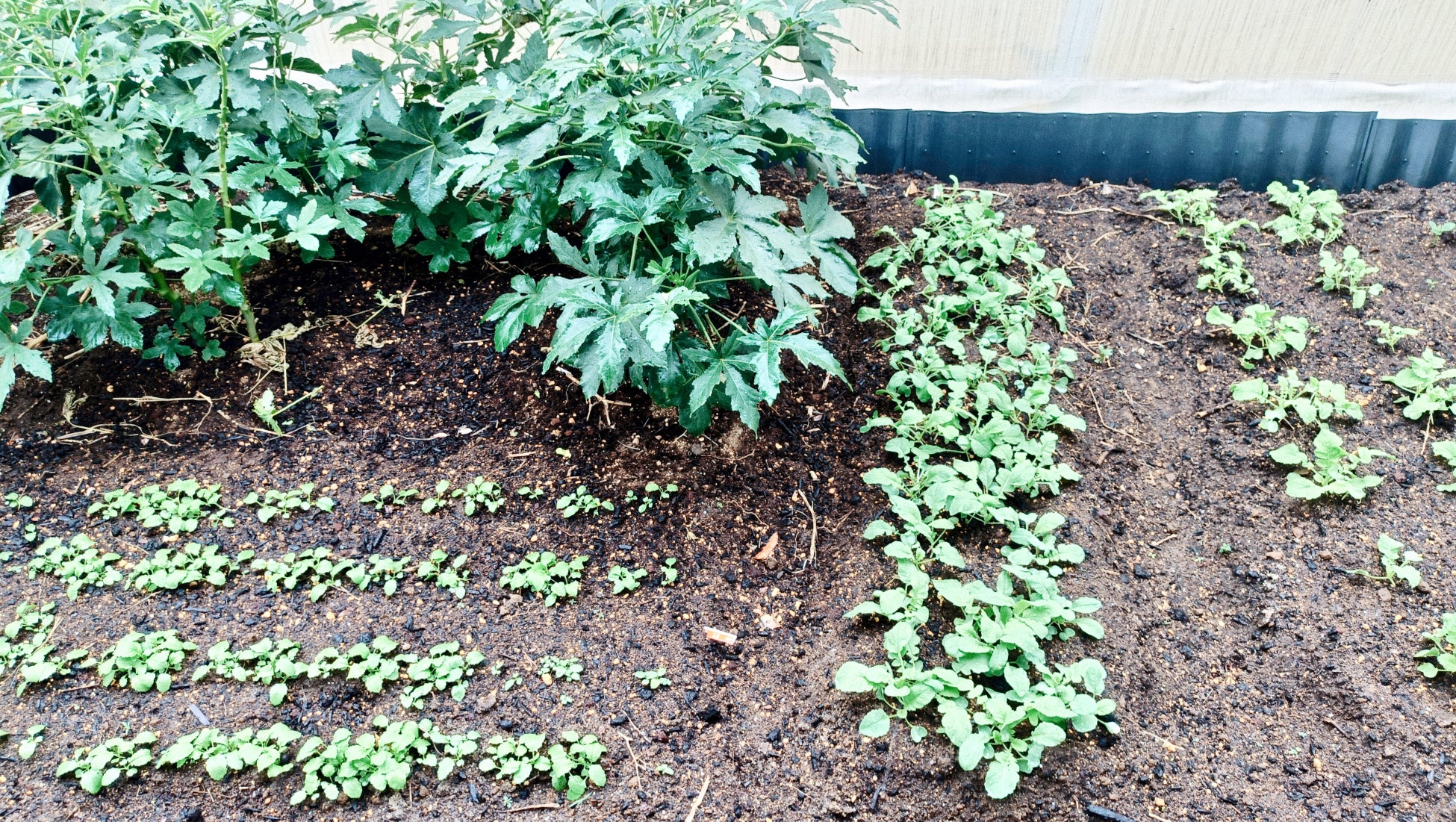 現在、畑ではピーマン、オクラ、聖護院大根、辛味大根、カブ、ニラなど、多種多様な旬の野菜たちが元気に育っています。