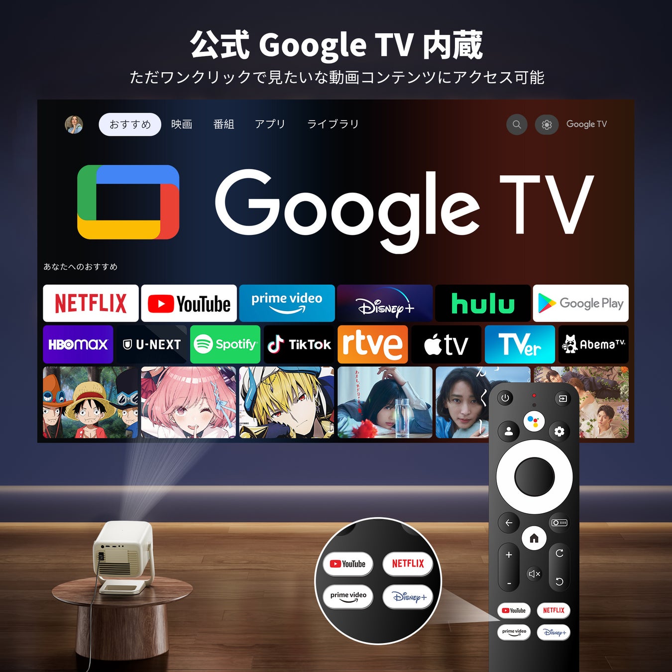 従来の Android TV プロジェクターが抱える「一部アプリで再生不能」「突然エラーで停止」といった課題を、Google より正式認定を取得した「Google TV」が根本的に解決。