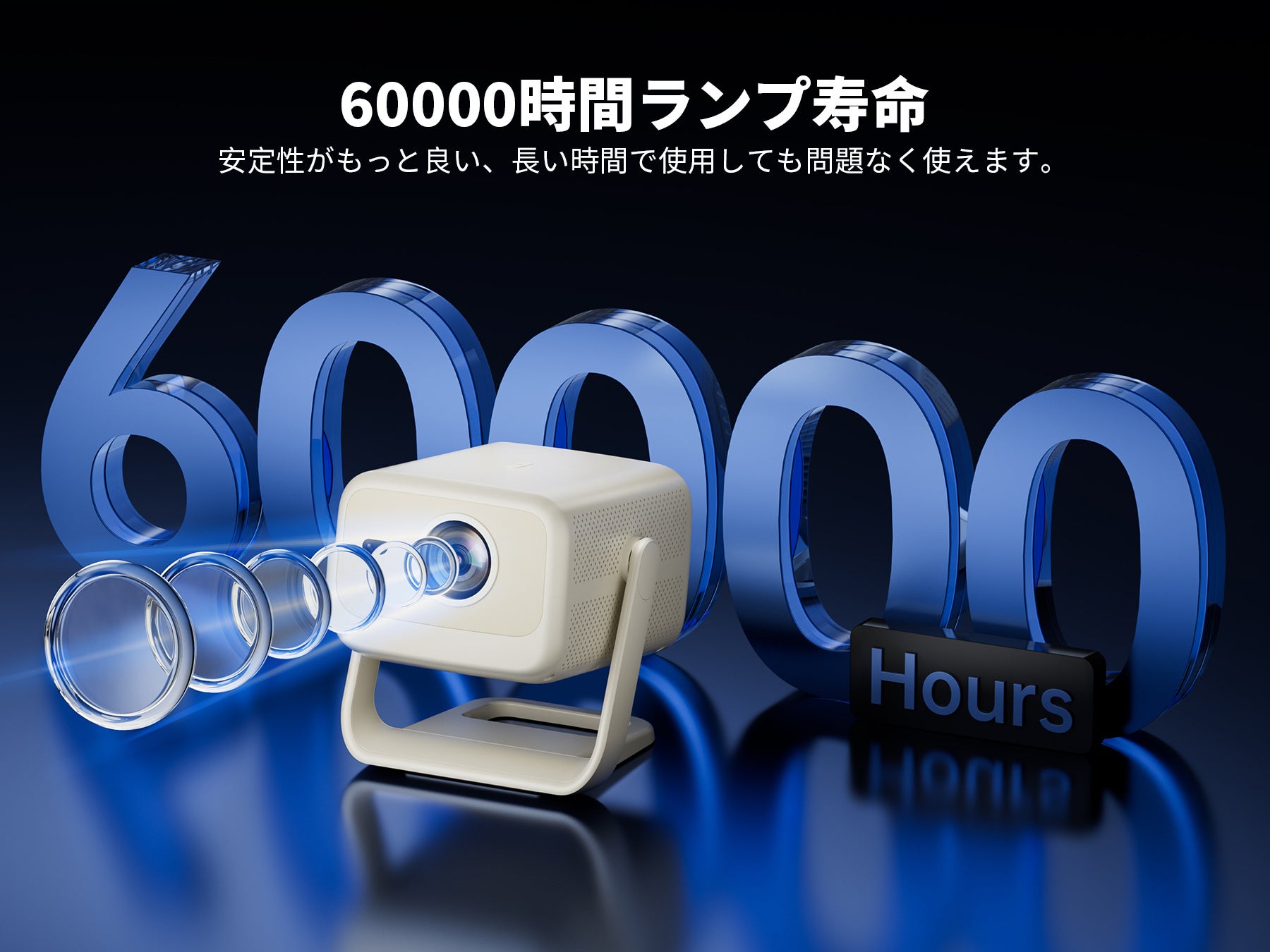 プロジェクターの弱点であるランプ寿命にも配慮。60000 時間という長寿命ランプを採用し、毎日 2 時間使用しても約 82 年間の使用が可能(計算上)。長い間、あなたのエンタメライフやビジネスシーンを支え続けます。