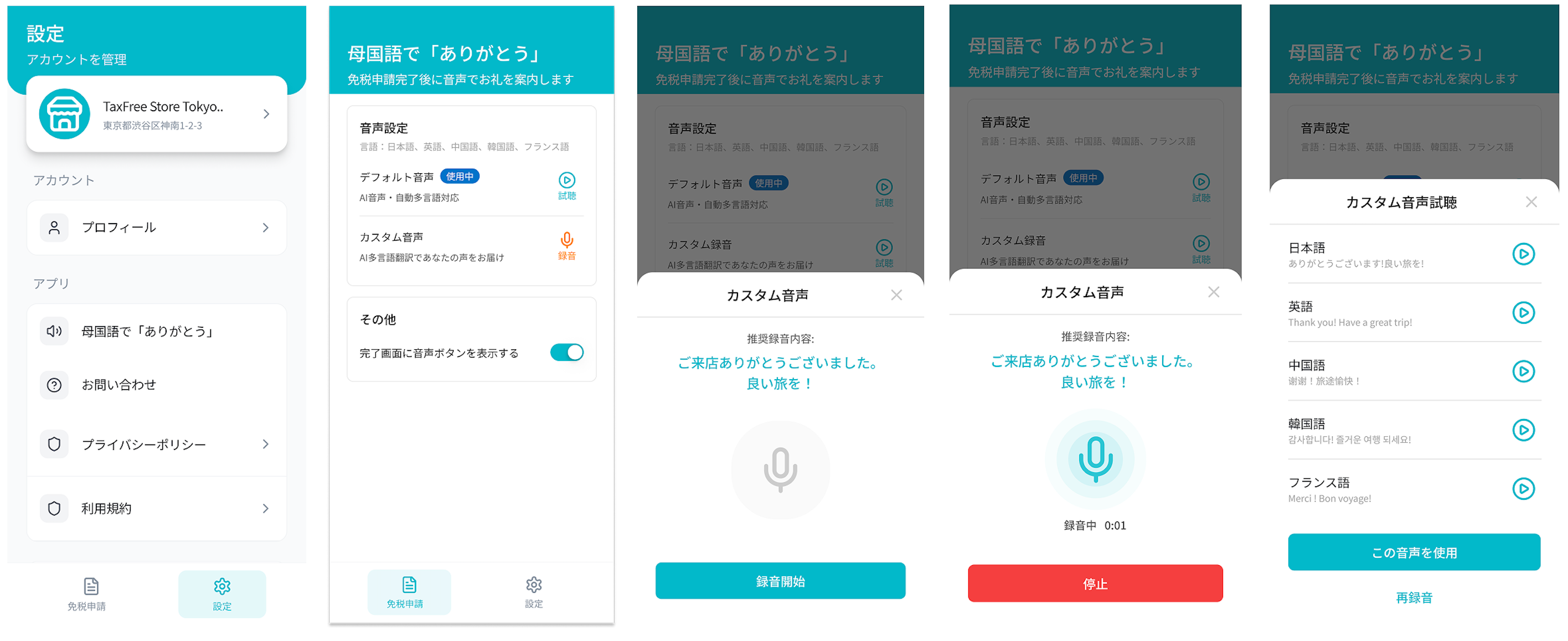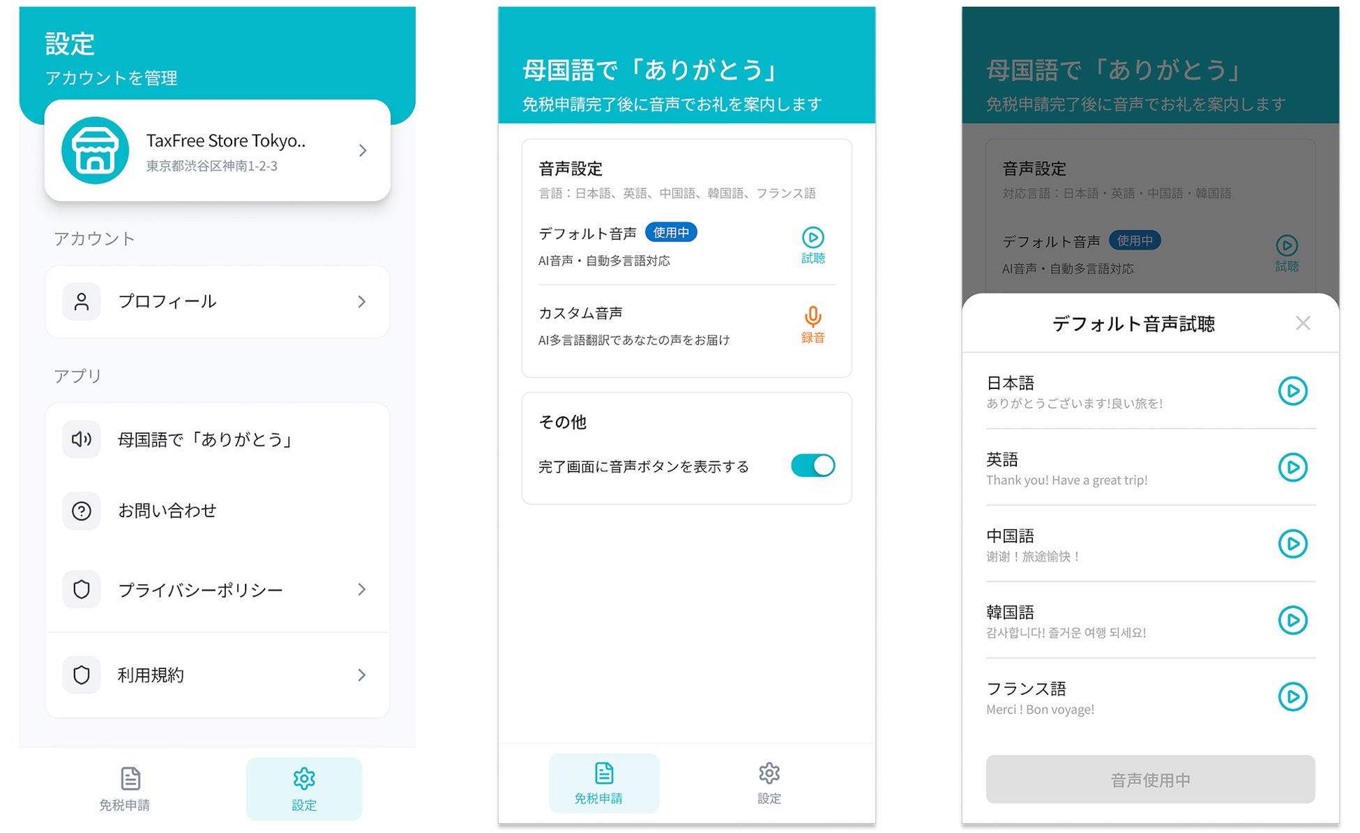 店舗での免税手続き完了後、音声で感謝を届ける「日本のおもてなし」をアプリに実装