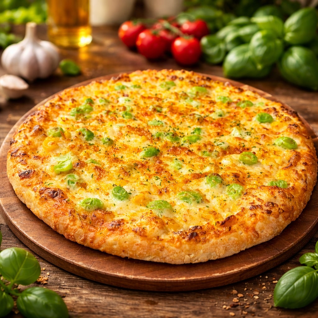ホワイトソースをベースに、枝豆、コーン、マヨネーズ、MIXチーズを組み合わせた、まろやかでコクのある味わいのピザです。