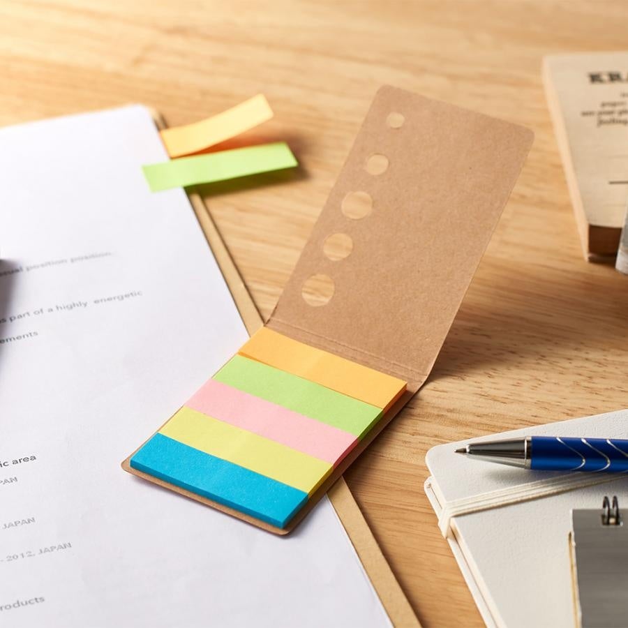 環境配慮の要素を取り入れた付箋メモ。実用性に加え、エコ意識の高まりに対応したアイテムとして注目されています。企業の姿勢を伝えるノベルティとしても活用されています。