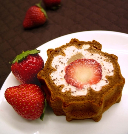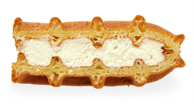 いちごをまるごと4つと、練乳入生クリーム、プレーンカスタードをロールしたよくばりなワッフル