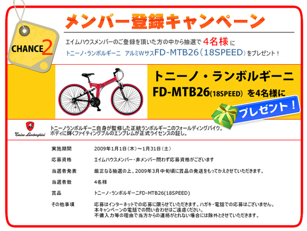 エイムハウス、ブランド自転車やギフトカードが当たる、新年特別キャンペーン実施