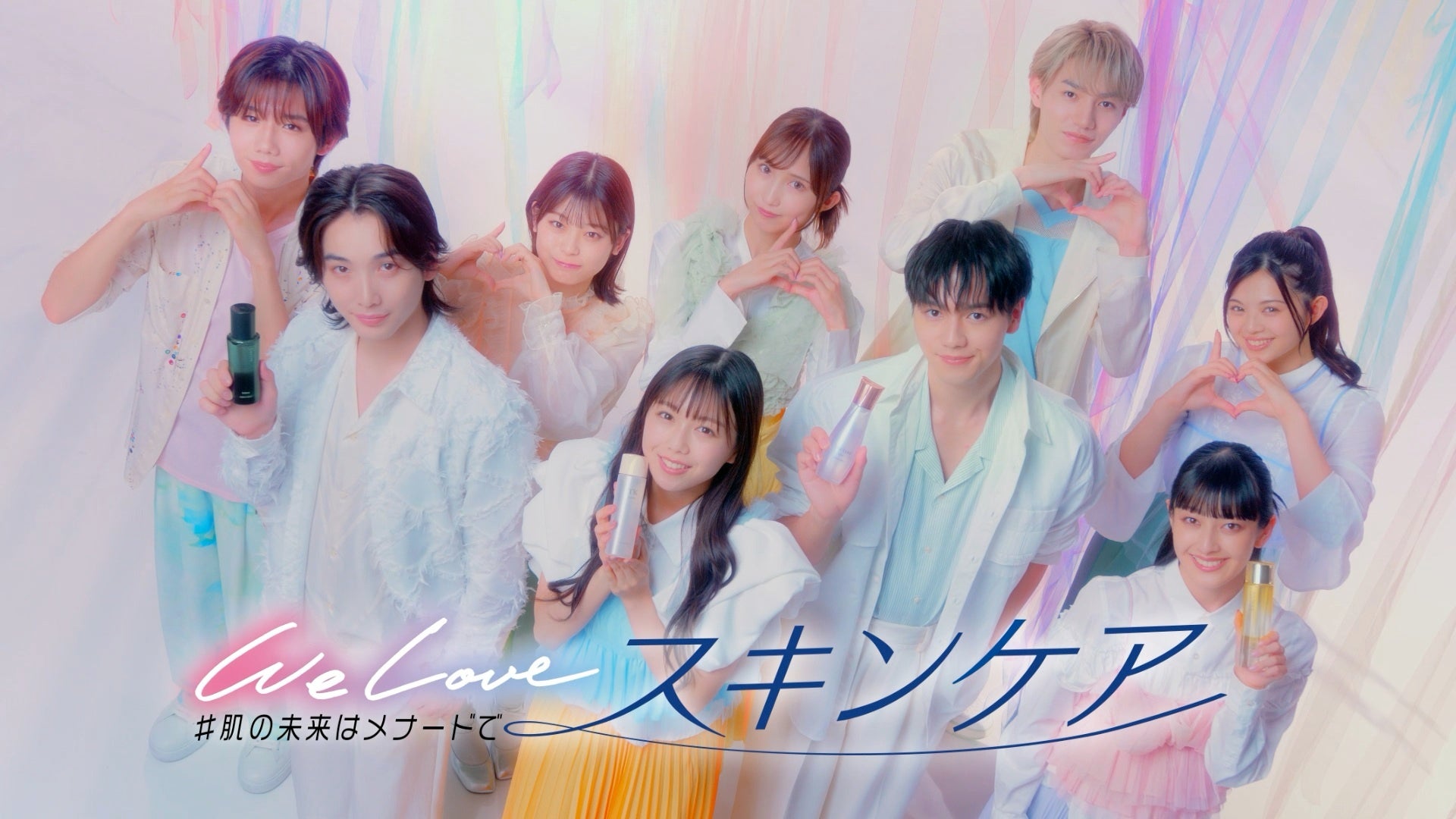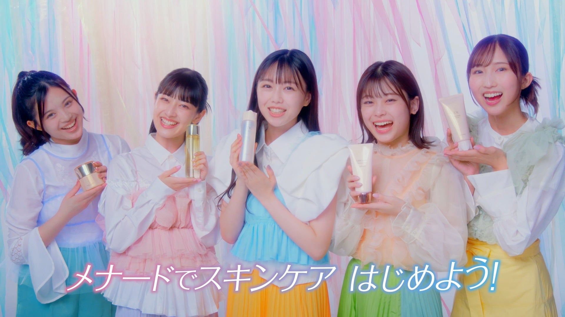 ONE LOVE ONE HEARTのメンバーそれぞれに、日々メナードのスキンケアアイテムを使っていただき、笑顔になれる様子を、メンバーらしさ全開に描いています。「この春一緒に!メナードでスキンケアはじめよう!WE LOVE スキンケア!」と元気よく、フレッシュな春らしいWEBCMに仕上がっています。