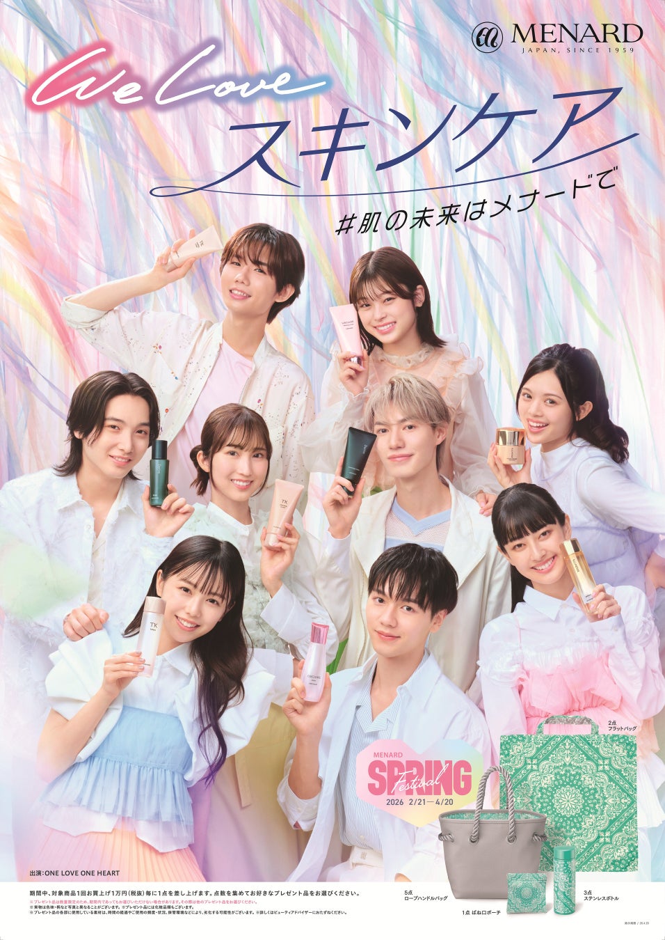 日本メナード化粧品株式会社(本社:名古屋市中区、代表取締役社長:野々川純一)は、2026年春のキャンペーン スプリングフェスティバル(2/21~4/20)において、「 WE LOVE スキンケア #肌の未来はメナードで」をテーマとした、プロモーションを展開します。男女混合9人組グループ「ONE LOVE ONE HEART」を起用したWEBCM、メナード公式Instagramでの動画をはじめとしたコンテンツ公開を予定しています。