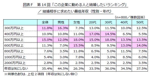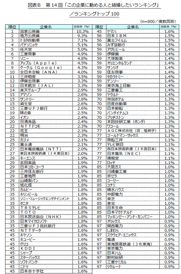 ・調査名称 :第14回「この企業に勤める人と結婚したいランキング」調査