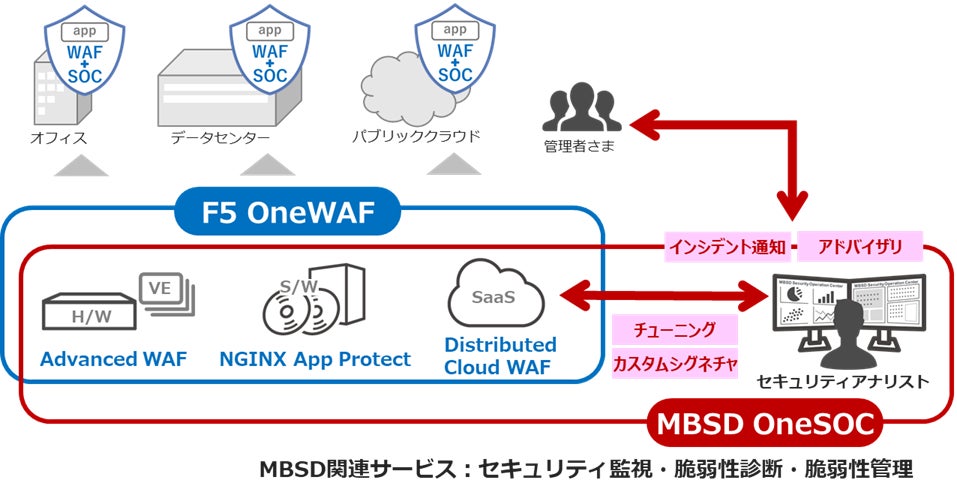 これによりMBSDは、F5ネットワークスジャパンの各WAF(OneWAF)を一元化した監視・運用(OneSOC)が可能となりました。