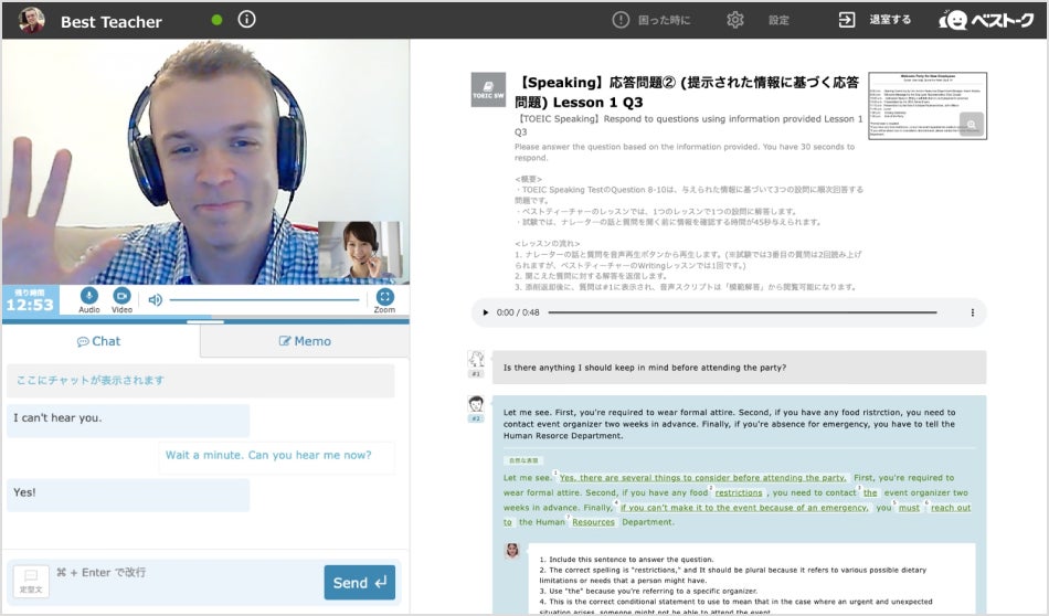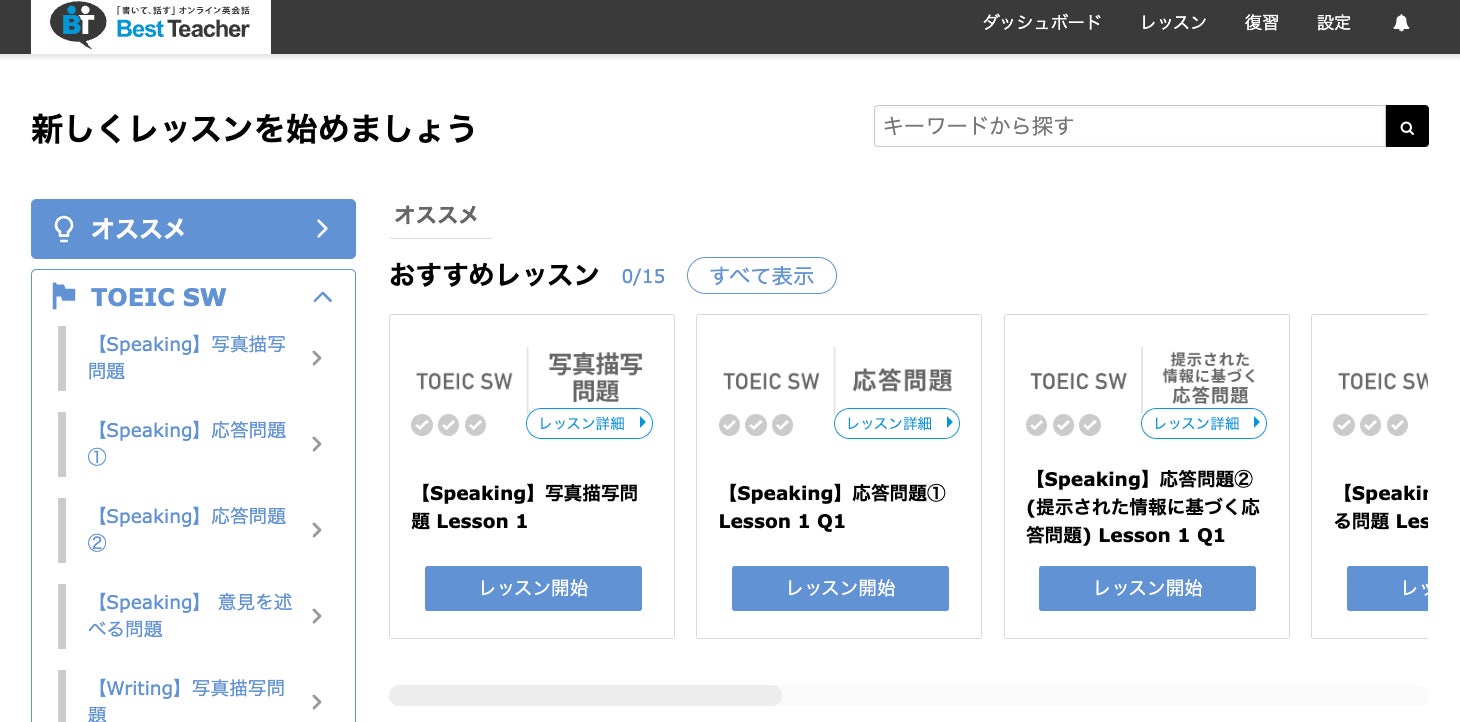 「書いて、話す」オンライン英会話「ベストティーチャー」、TOEIC® SW対策コースのコンテンツを大幅リニューアル