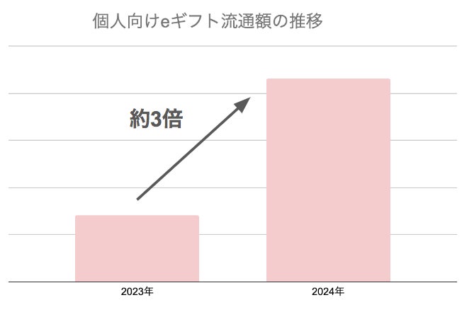 当社が長年ギフトと向き合う中で、顕著に感じているのがギフトを購入する方々の「贈り方」の変化。パッケージやラッピングなど、形のあるギフトを手渡しや郵送で贈る方法だけでなく、LINEやメールでギフトを贈る「eギフト」が、新しい贈り方の選択肢としてとても好評です。実際に、ソウ・エクスペリエンスが取り扱う個人向けeギフトの流通額は、昨年の同月と比べ約4倍(2024年11月実績)、1月〜11月の合計流通額でも昨年の約3倍と、急成長を遂げています。