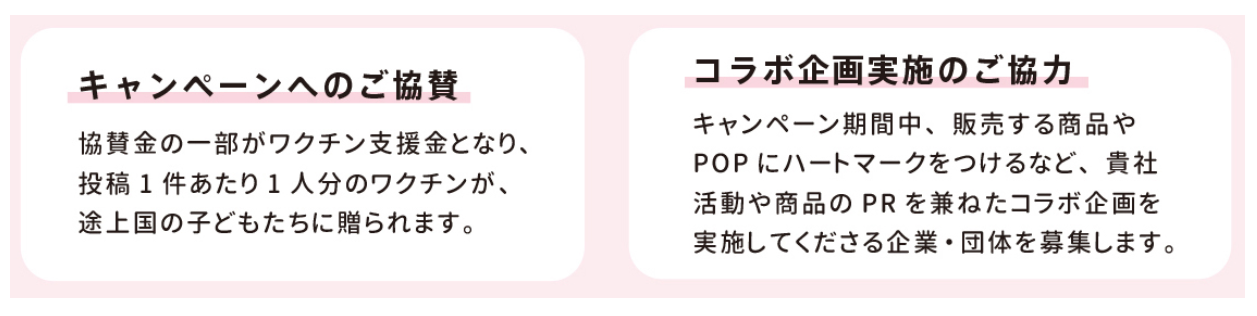 【「小さな幸せ、ひとつのワクチン」チャリティーキャンペーン詳細】