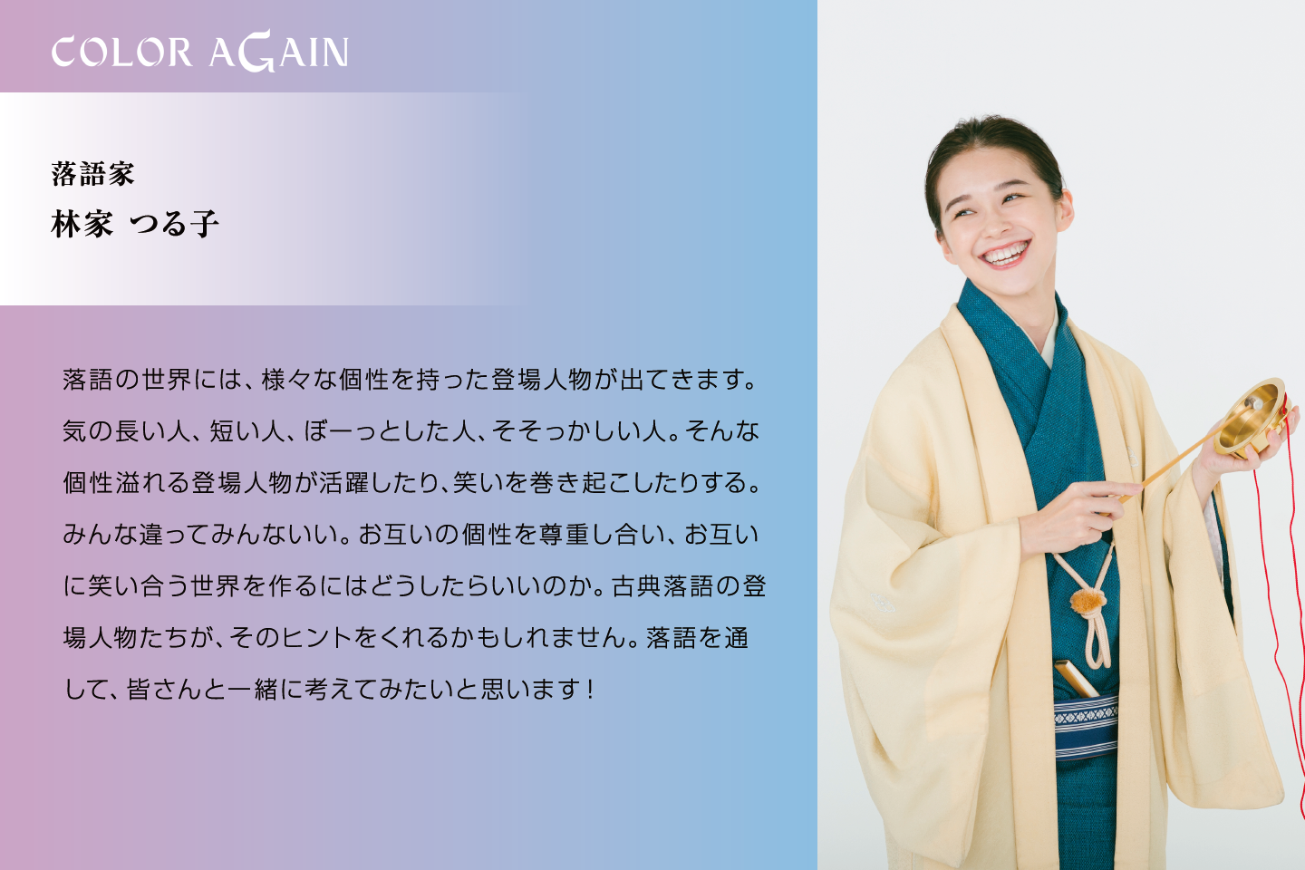 渋谷区に縁のある小学校4〜6年生を対象にした、楽しみながら人間関係についての考え方を学ぶワークショップを行います。ゲストに落語家の林家つるこさんをお招きし、オリジナルワークシートを使って自分がどんな人なのか考えたり、「いじり」をテーマにしたオリジナル落語を聴き、いじりについて考え直す機会を作ります。
