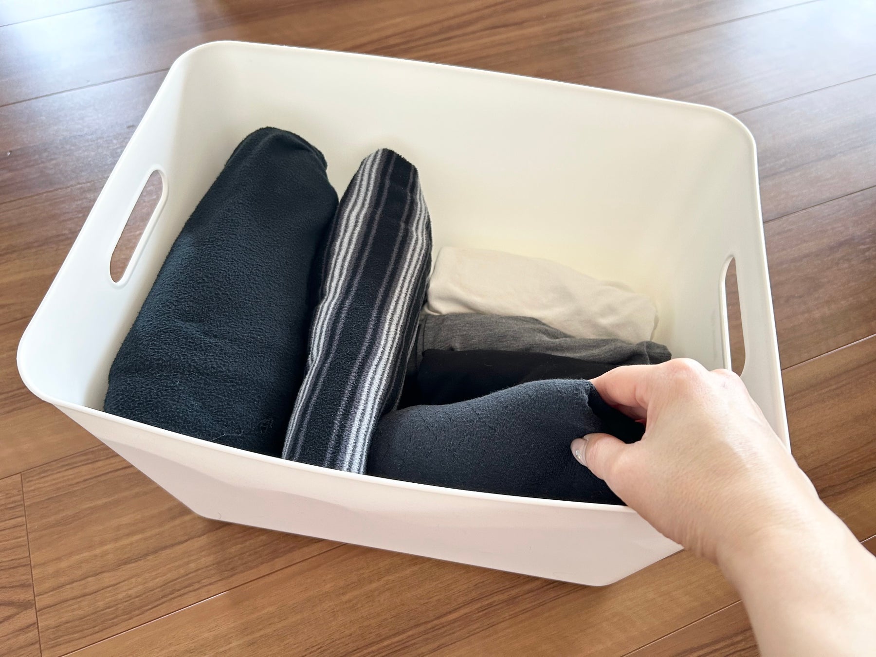 収納ケースは必ずケースを清潔にしてからにしましょう。ケース内にホコリやダニが付いていてはせっかく衣類をキレイにしたのに意味がありません。