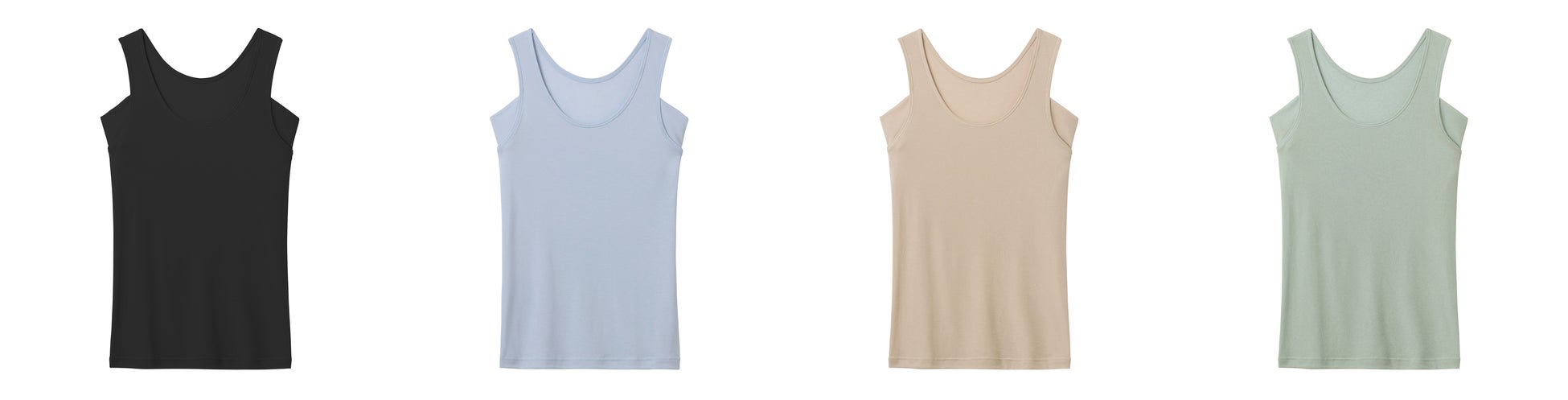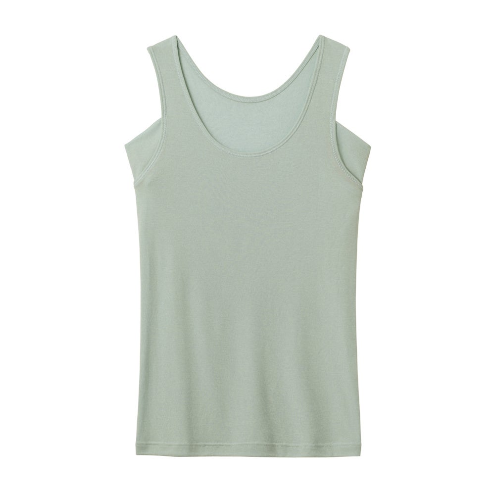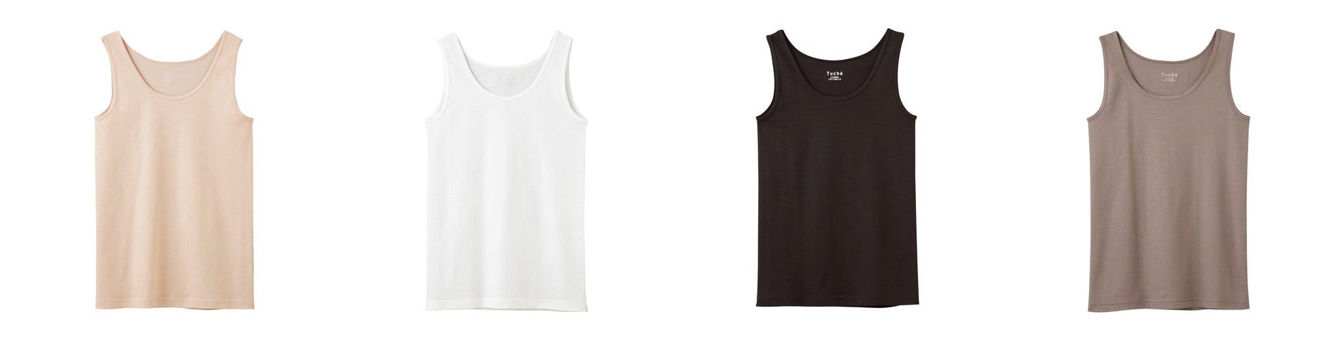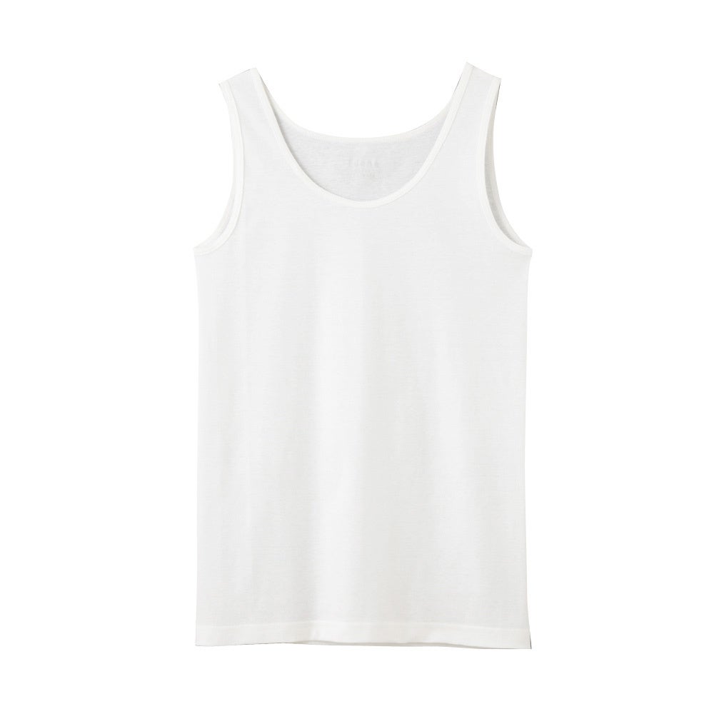 1年通して着用できる本体コットン100%素材のタンクトップは、ワードローブと相性の良いシンプルなシルエット。身頃には脇はぎが無いので、ごろつきにくく、肌への刺激を軽減。コットンのやさしい着心地。