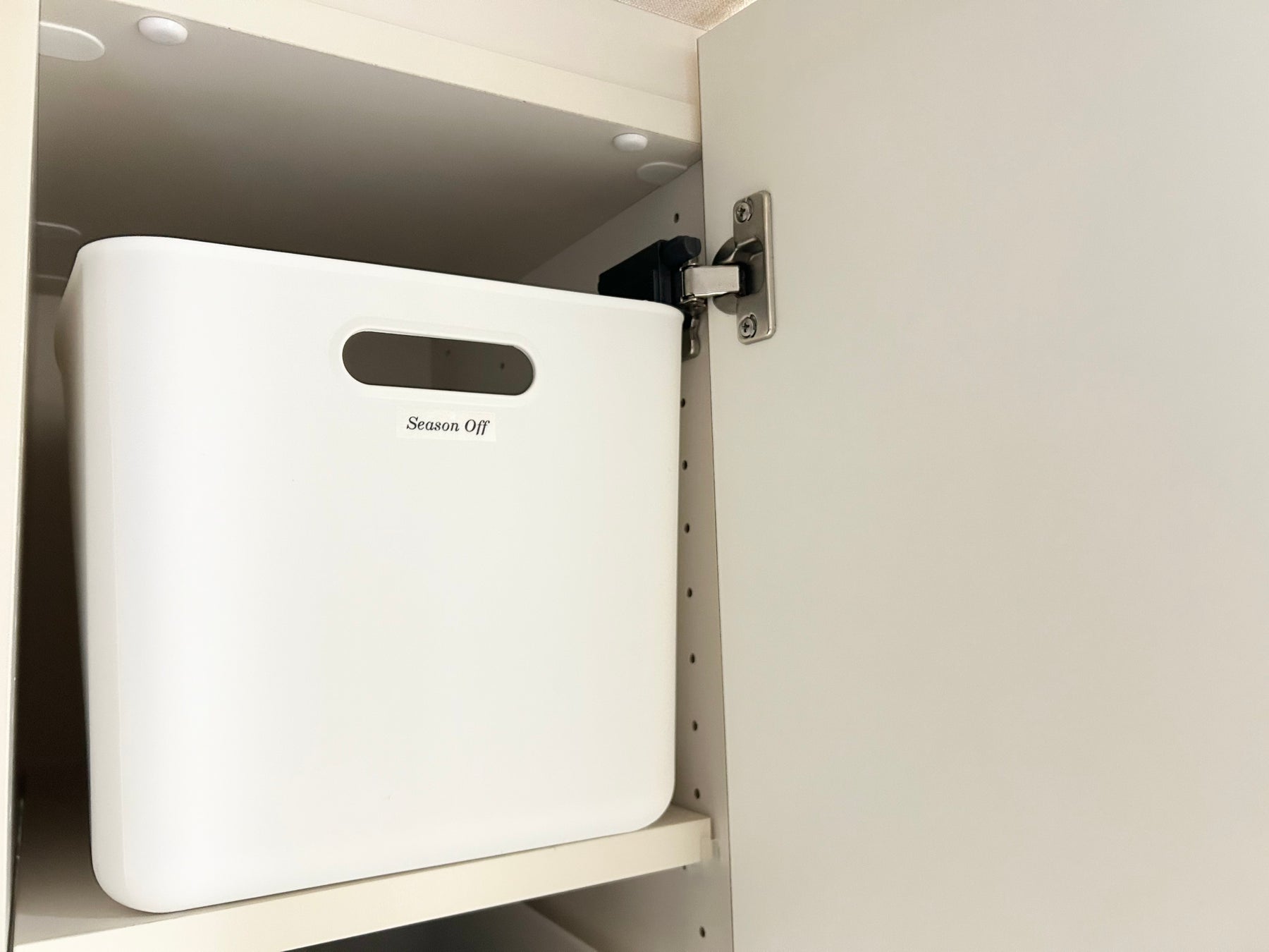 収納ケースにしまったら中の物が分かるようにラベルを付けるようにしましょう。その際は冬物と記載せず、『シーズンオフ(季節外)インナー』などと記載すると、冬物と夏物を季節ごとに入れ替えた際に書き替えずにすみます。