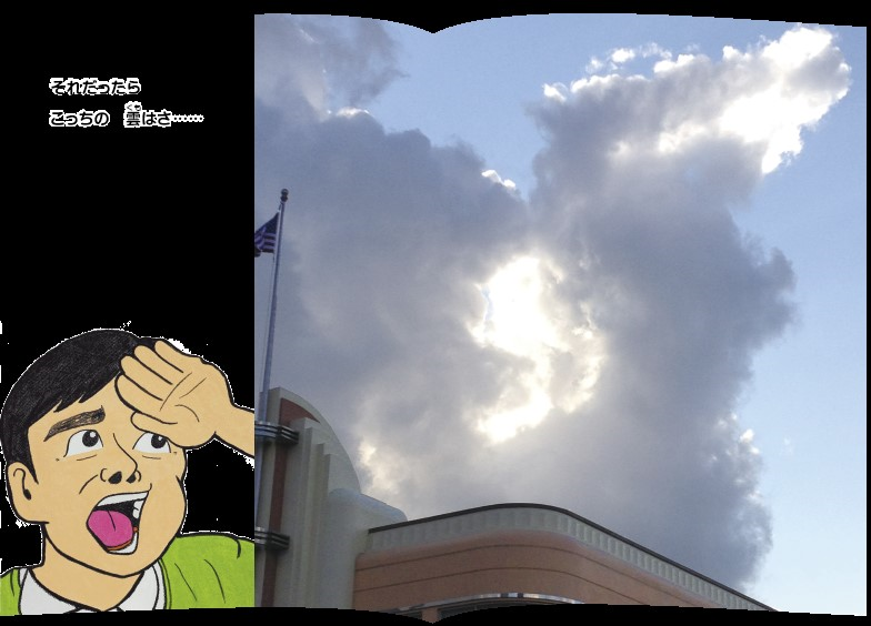 たまには、大人も空を見上げて雲をぼぉーっと見るのはどうでしょう? 最近、5分でも足をとめて雲を眺めたことはありますか? 5分もすれば、雲の形はけっこう変わりますよ。そのたった5分でさえ、足をとめることができないほど忙しい毎日。休日に子供と足をとめてぼぉーっと、一緒に空を眺めることができる時間に幸せを感じつつ、空を眺めて想像することの大切さが伝わればいいなと思ってこの絵本を描きました。