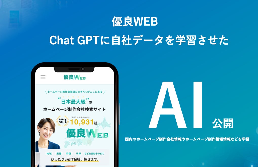 「優良WEB」を運営するJetB株式会社(本社:東京都新宿区、代表取締役社長:竹内勇人)は、この度、「優良WEB」にAIチャットボット機能を追加しました。このチャットボットは、各都道府県のホームページ制作会社情報や、国内のホームページ制作の相場情報などを学習しています。自社データを学習させたChatGPTベースのAIチャットボットの公開は、Web発注系メディアでは国内初の試みとなります。(※1)