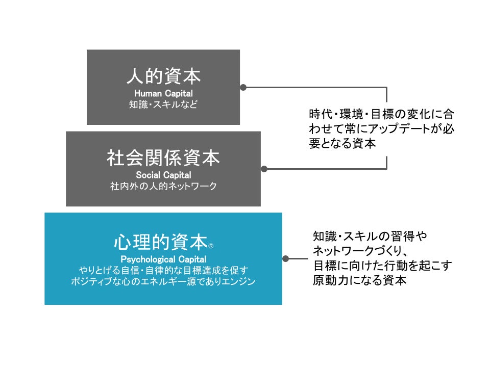ルーサンス(F.Luthans)教授らによって提唱された心理的資本(psychological capital)は、人が自分らしくイキイキとライフ&キャリアを進んでいくためのカギとなるものです。会社やその他の組織にとってはメンバーの熱意や活力を高めるための個人の重要な資源ともいえます。令和元年度版厚生労働白書では、心理的資本の育成はワーク・エンゲイジメントの向上につながることが指摘されています。