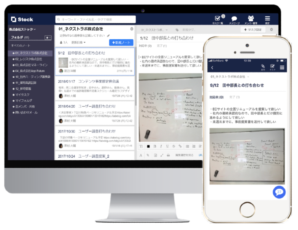 Stockには、「議事録」「商談・面談記録」「マニュアル」「企画書」等、あらゆる情報をストックできます。さまざまな用途で活用できるため、上場企業や官公庁をはじめとする大手組織から中小企業まで、幅広い業種で急速に導入が進んでいます。