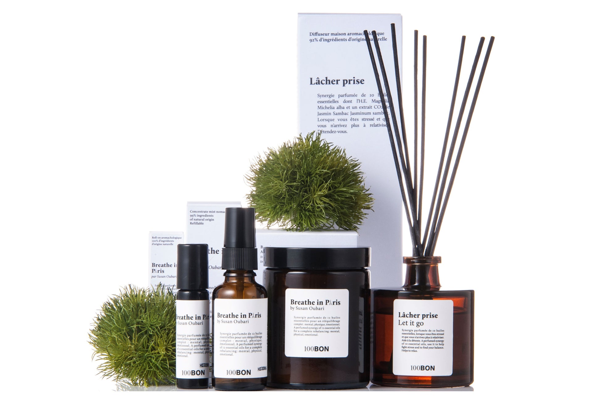 天然香料(エッセンシャルオイル)の心理的な効果に着目し、パティ・カナックの感性、ノウハウを融合させた、心や気持ちに働きかける香り。100BONならではのアロマコロジーの提案。