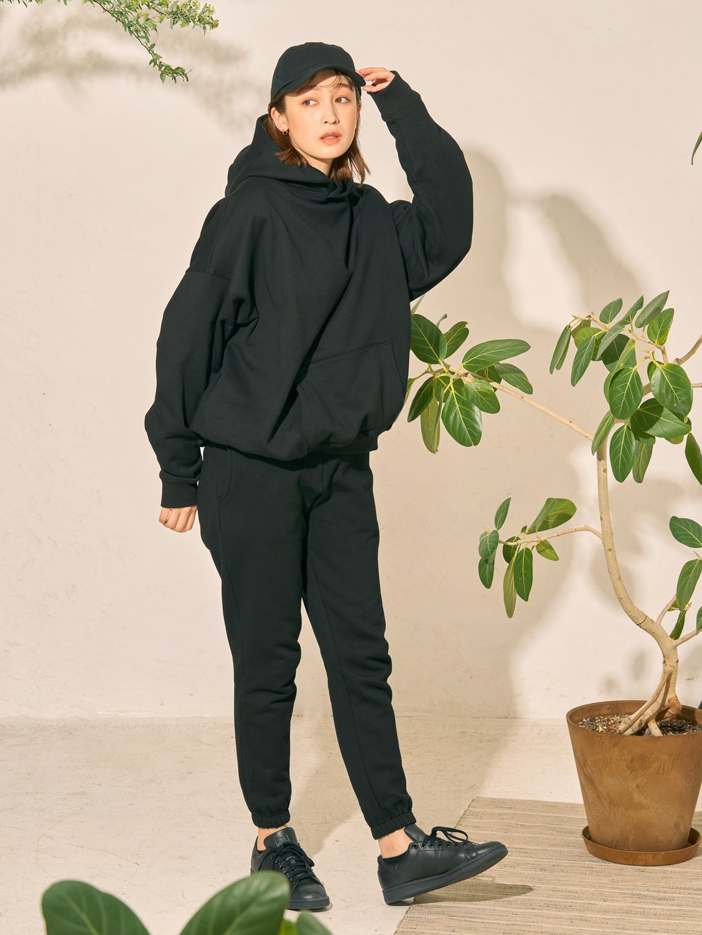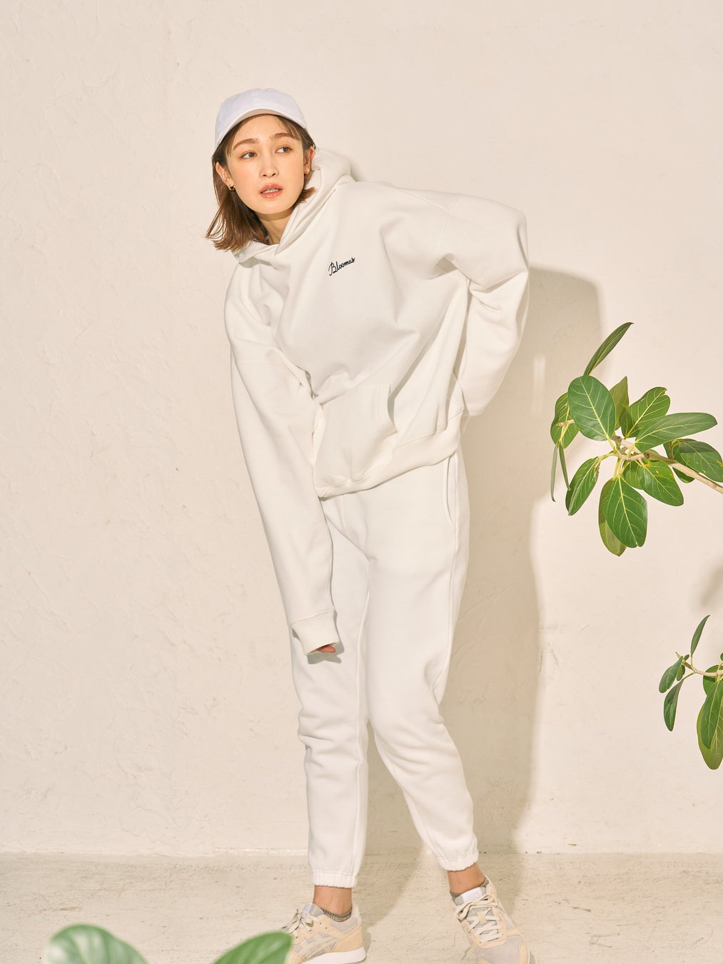 ゆったりだけど、ストレートで足のラインを綺麗に見せてくれるので、私服でも活躍します。こちらもセットアップ着用やオーバーサイズでゆったりご着用いただくのもおすすめですし、別々でも合わせていただきやすくなっております。生地はパーカーと同じ裏起毛です。春らしいペールカラーなど全4色展開です。
