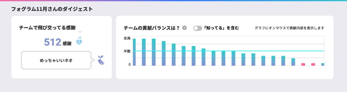 数字で見える優劣ではなく、貢献への承認が自然に行われる仕組みを強化しました。