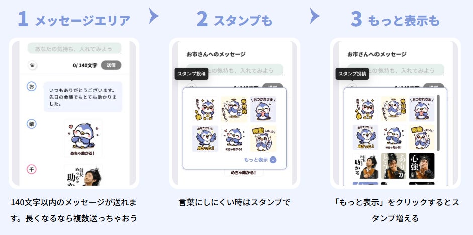 「リアクションボタンだけでは物足りない、直接感謝を伝えたい!」という声にお応えし、新たにメッセージ機能を導入しました。