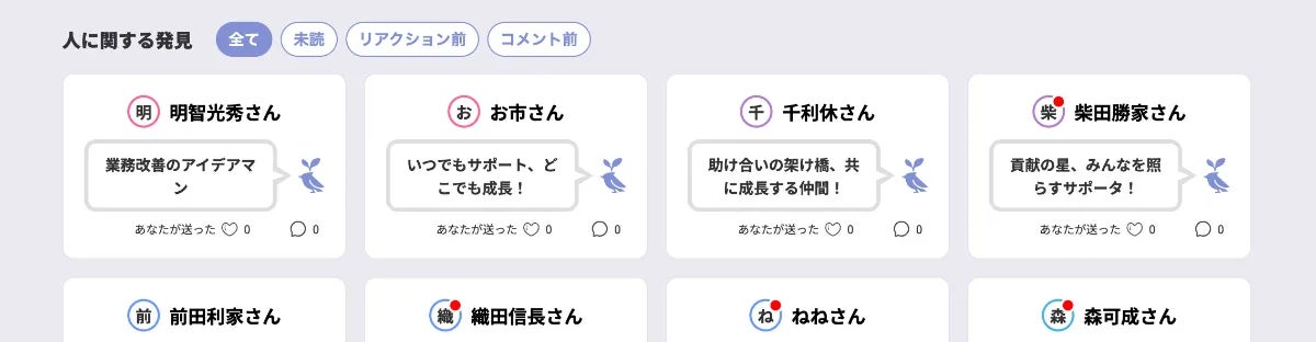 メンバーがそれぞれの役割や成果を簡潔に認識でき、承認のきっかけが生まれます。