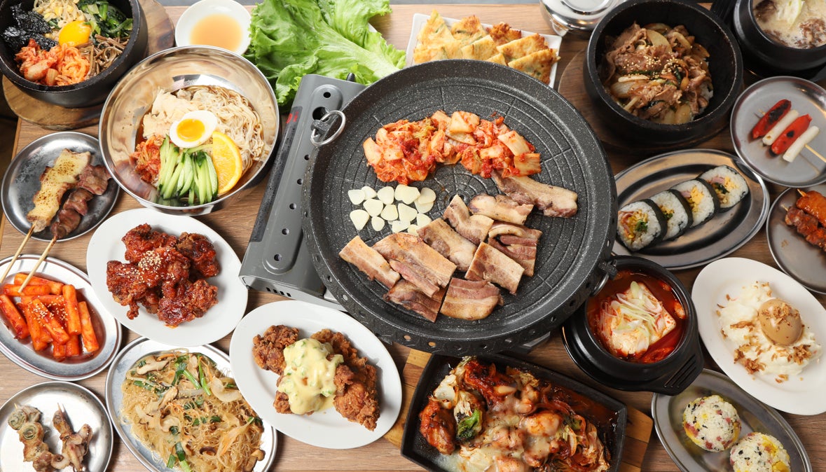 韓国料理の定番となった豚バラ肉のサムギョプサルや、話題のプデチゲ鍋もご用意していますので気心しれた仲間やご家族でテーブルを囲んでお楽しみいただくこともできます。サイドメニューのオススメとして、自慢の「ふわふわチヂミ」はご注文いただいてから丁寧に焼き上げます。熱々でふわふわの食感をご堪能ください。日本でも馴染みのある「キンパ」はご注文いただいてから巻き上げることで、よりごま油の風味や韓国のりの食感を損なわず美味しくお召し上がりいただけます。