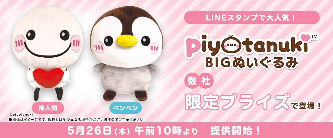 「【数社限定】ぴよたぬき BIGぬいぐるみ」(全2種)は、なくなり次第終了となりますので、この機会をお見逃しなく!