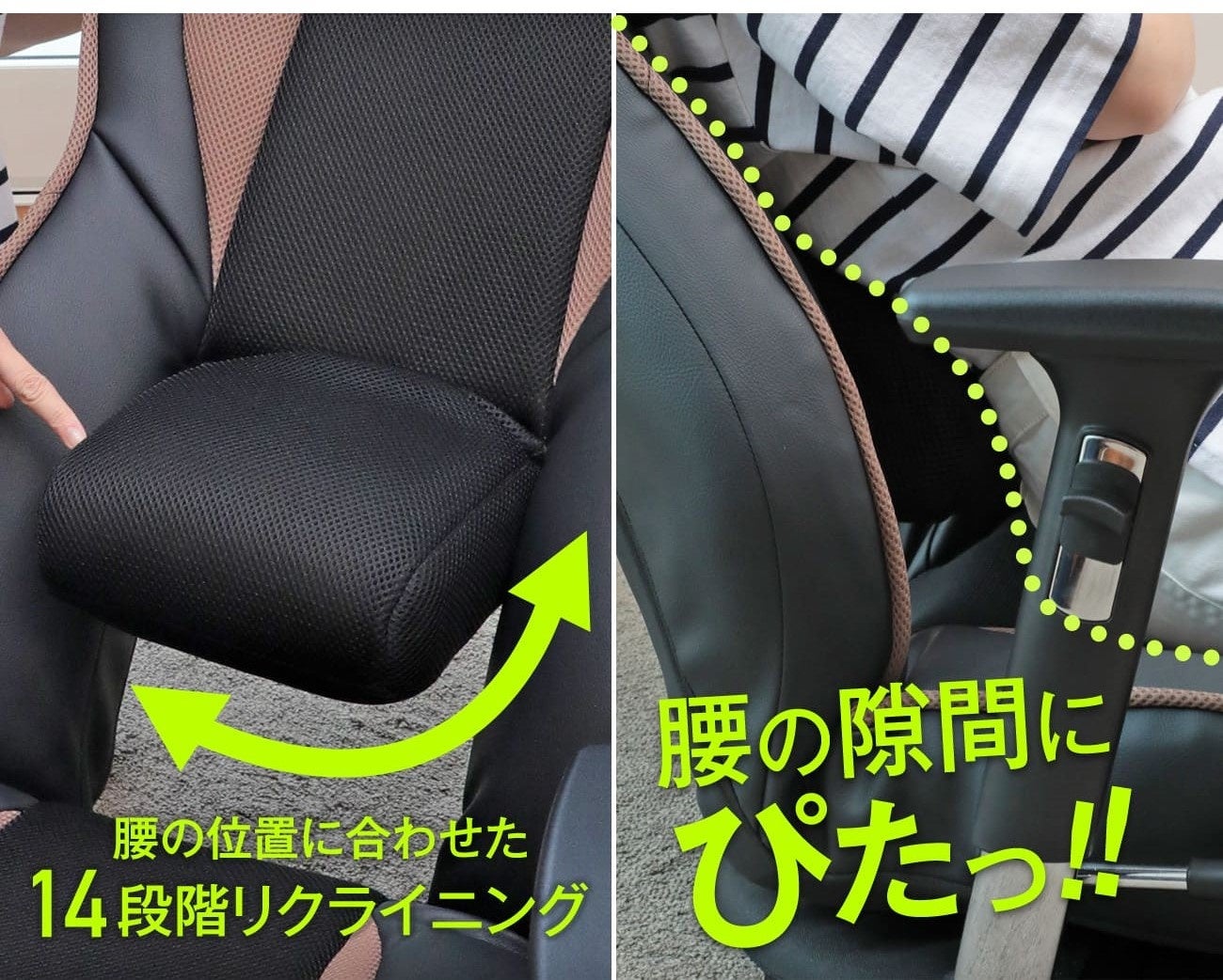 本シリーズの最大の特徴は、腰の部分にある「神の手」機能。この機能が、腰と背もたれにある"あの隙間"をピタッと埋めてくれることで、着座時の腰をしっかりサポートしてくれます。
