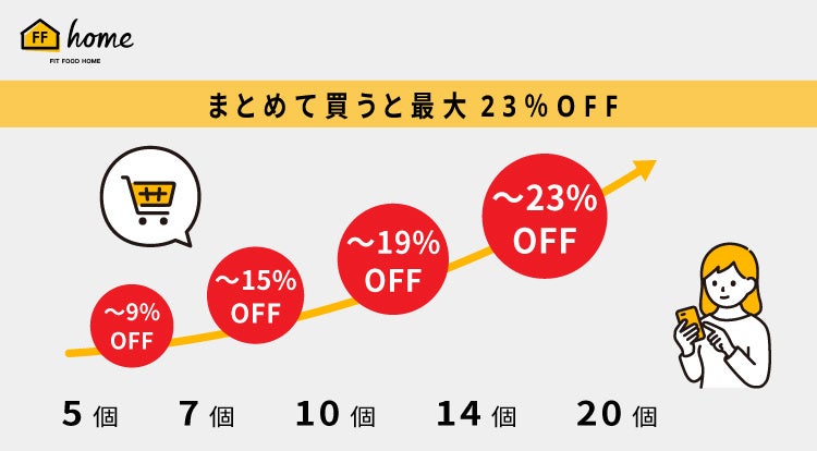 ご予定やライフスタイルに合わせて選べるだけでなく、一度にお届けする個数が多いほど1個あたりの割引率が大幅にアップし、最大【23%OFF】にてご購入いただくことが可能です!(※5個と比較した場合の割引率)