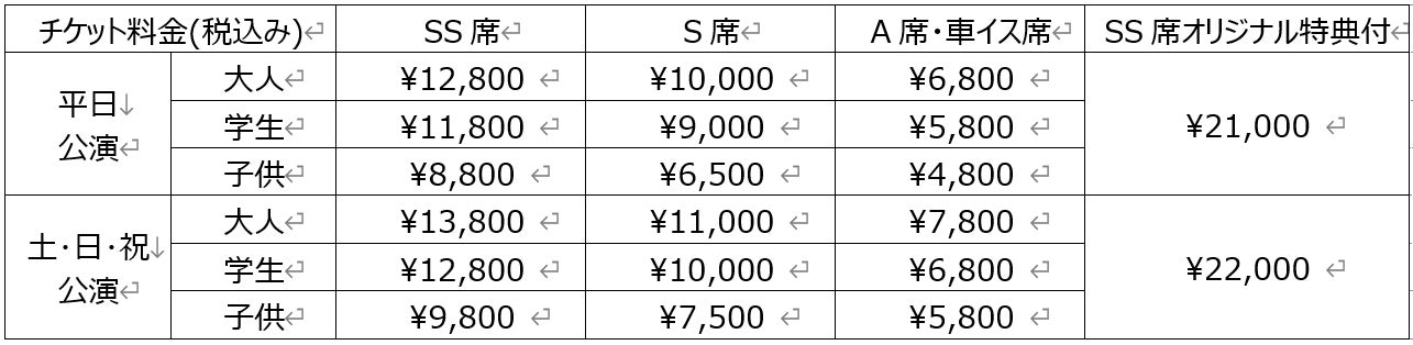 ※SS席オリジナル特典付はフジテレビダイレクト・チケットぴあ・ローソンチケットにて販売いたします。