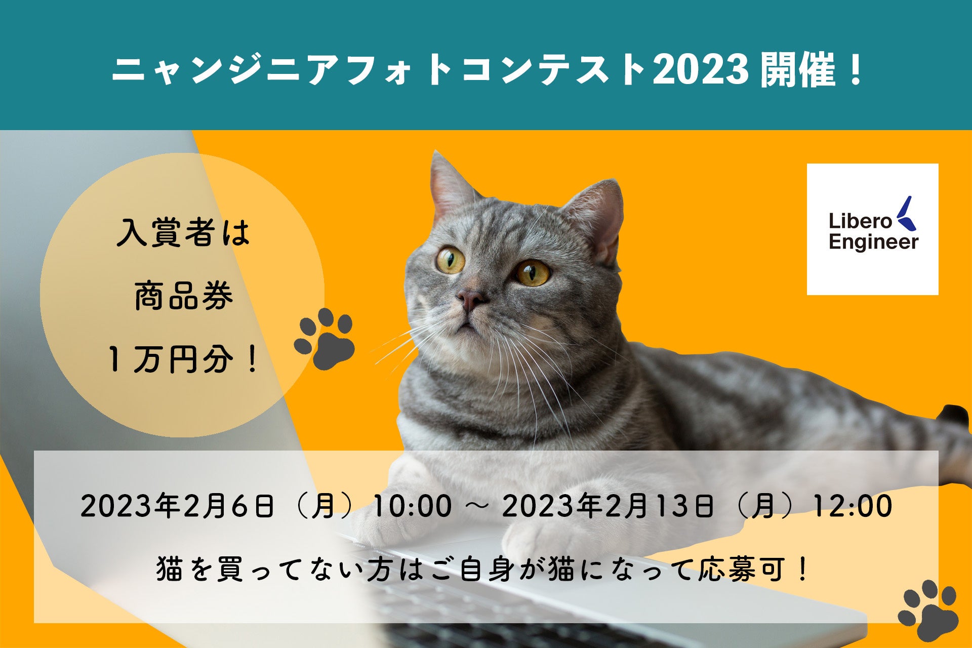 エンジニアと猫についての関係性については後日オウンドメディアの方でおまとめさせていただこうと思いますが、可愛い猫写真で癒されたいにゃんにゃん大好きエンジニアさんを応援したいリベロエンジニアとしては、2月22日のスーパー猫の日に向けて「ニャンジニアフォトコンテスト2023」を開催する運びとさせていただきました。