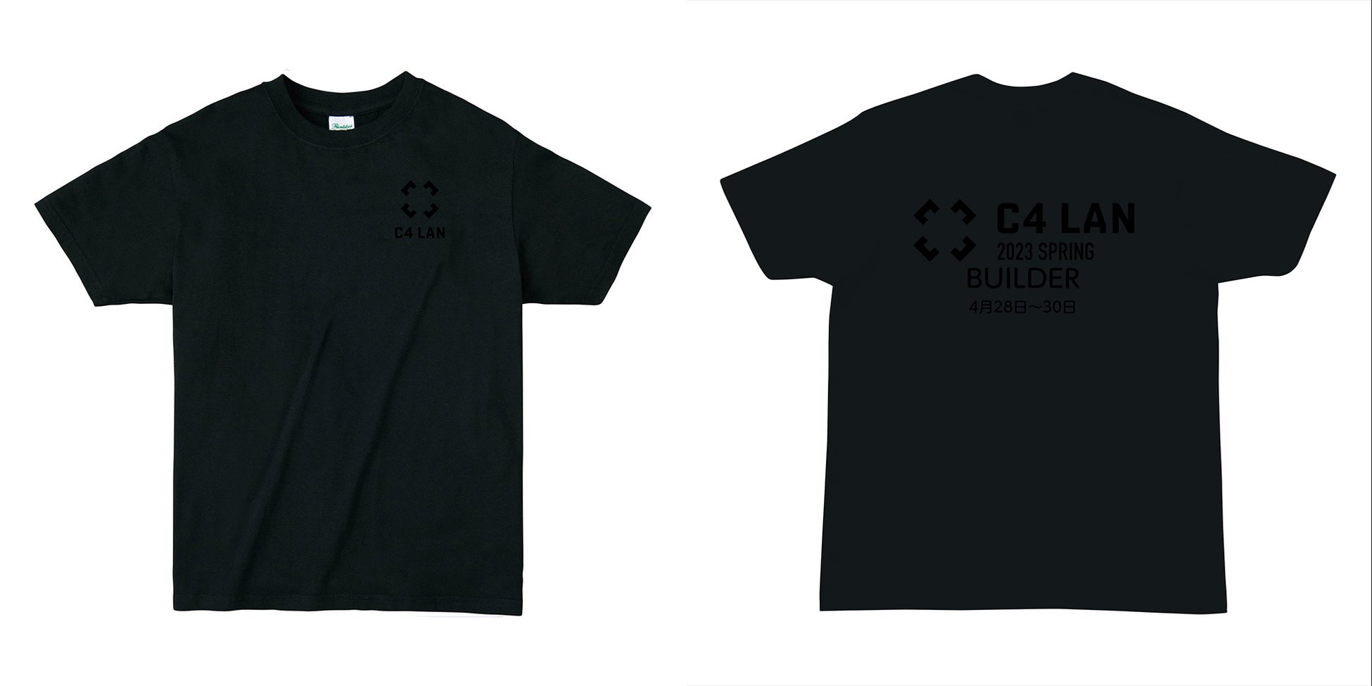 「C4 LAN 2023 SPRING」では設営及び撤収作業時のボランティアスタッフを募集しております。ボランティアスタッフにご協力いただいた方には御礼の品としてオリジナルのTシャツをプレゼントいたします。