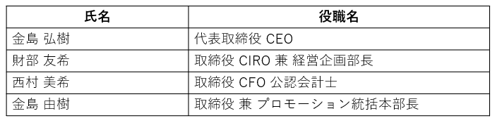 創業期より責任者として事業を着実に拡大するだけでなく、企業理念やビジョンへの共感度、帰属意識、強いリーダーシップから周囲からの信頼も厚く、従業員育成に長けていることなどからこの度、取締役に選任いたしました。