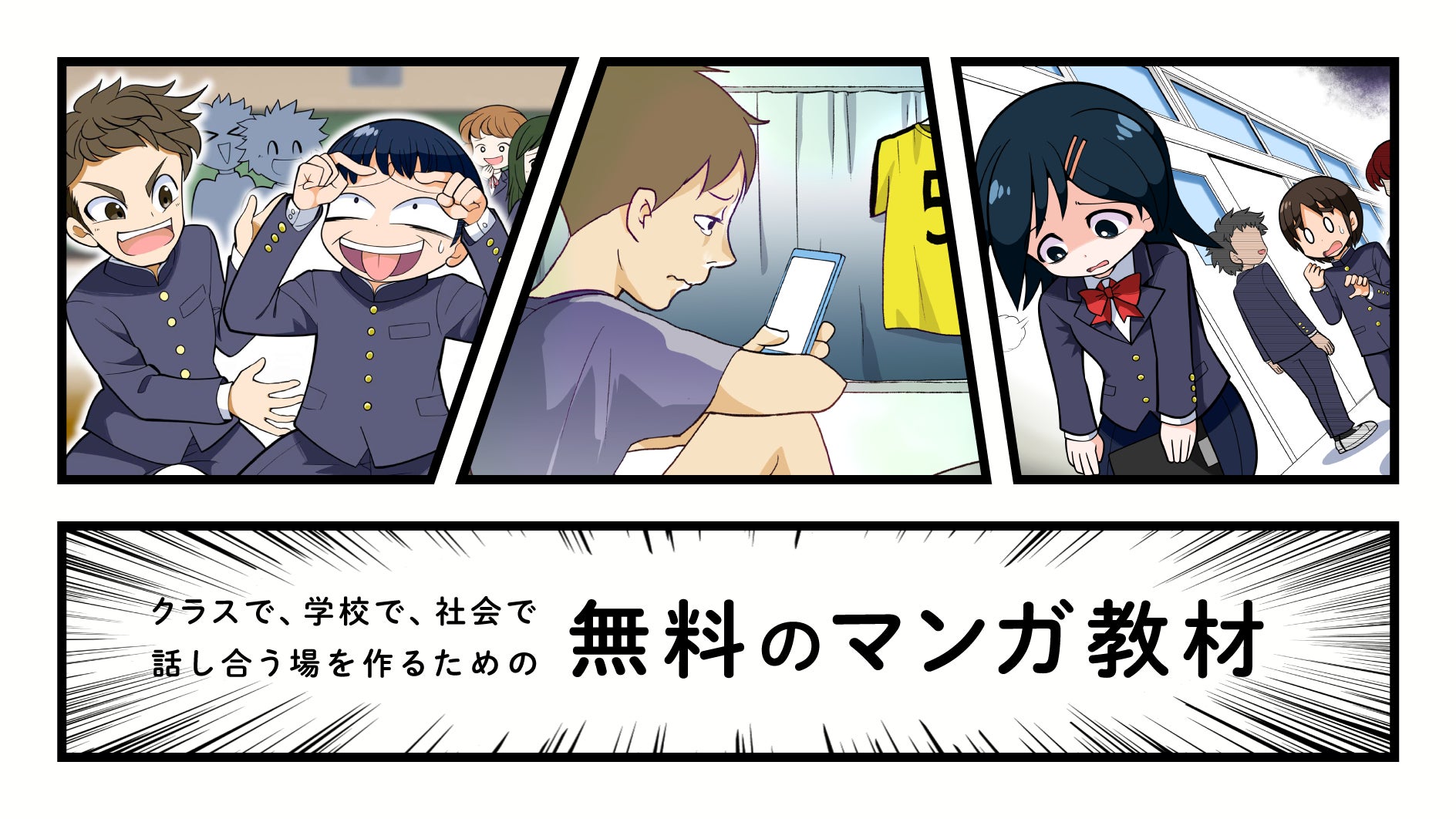 そこで私たちは、教育の専門家とクリエイターとともに無料で公開するマンガ教材を開発する本プロジェクトを立ち上げました。善悪がはっきりしない状況や、つい見落とされがちな繊細な問題を積極的に取り上げ、リアリティのある物語として描いたマンガ教材を開発し、無料で公開いたします。