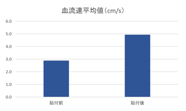 貼付前の平均値が2.9cm/sに対して貼付後の平均値は4.9cm/sと、貼付前後で2.0cm/sの増加が確認されました。