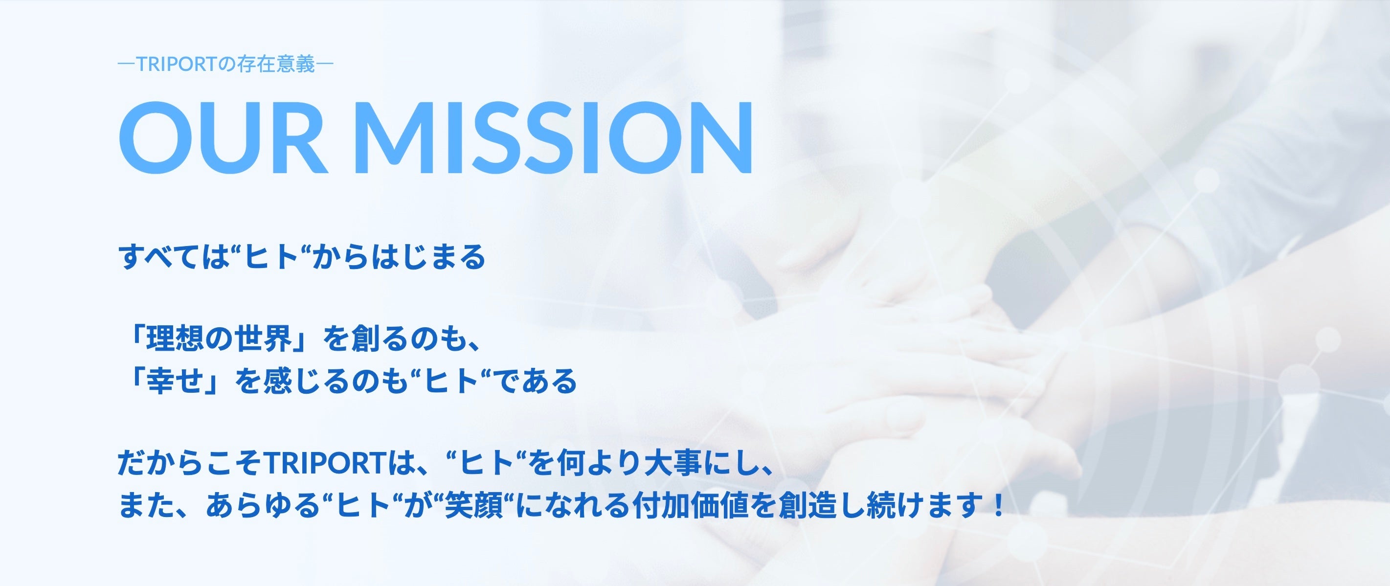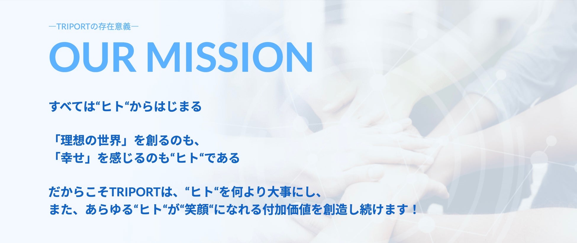 より多くの“ヒト”が笑顔になれる社会を創造するために、TRIPORTは挑戦し続けてまいります。