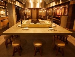 お店の内観は、古民家や蔵をイメージした木の柱と白い漆喰の落ち着いた和モダンなインテリア。炭を置いた囲炉裏を囲むようなコの字カウンターが中央で存在感を放ち、周囲にテーブル席を配置しました。お客様への細やかなおもてなしに努め、「焼肉を食べに来たけれど居酒屋のように長居したい」「居酒屋気分でリーズナブルに焼肉を食べたい」 という新たな価値を多くのお客様に提供するお店を目指してまいります。