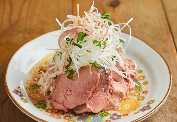 希少な国産の若鶏の白レバーを低温調理し、しっとりと仕上げました。風味をお楽しみいただける、香味野菜とごま油、塩で味付けいたしました。