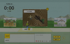 旅の途中で、同じスポットに止まった仲間とはオンライン上で会話をしながら、手元にあるカードを活用しながら、お互いの状況や感想を音声で共有できます。