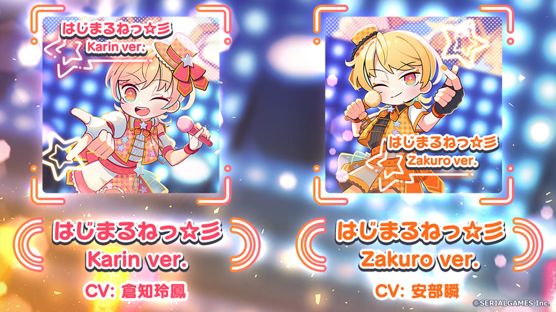 『デモ曲であそぶ!』モードでは、無料トライアル版でも好評いただいた本作のテーマソングである『はじまるねっ☆彡 Karin ver.(CV.倉知玲凰)』と『はじまるねっ☆彡 Zakuro ver.(CV.安部瞬)』の2曲で遊ぶことが出来ます。