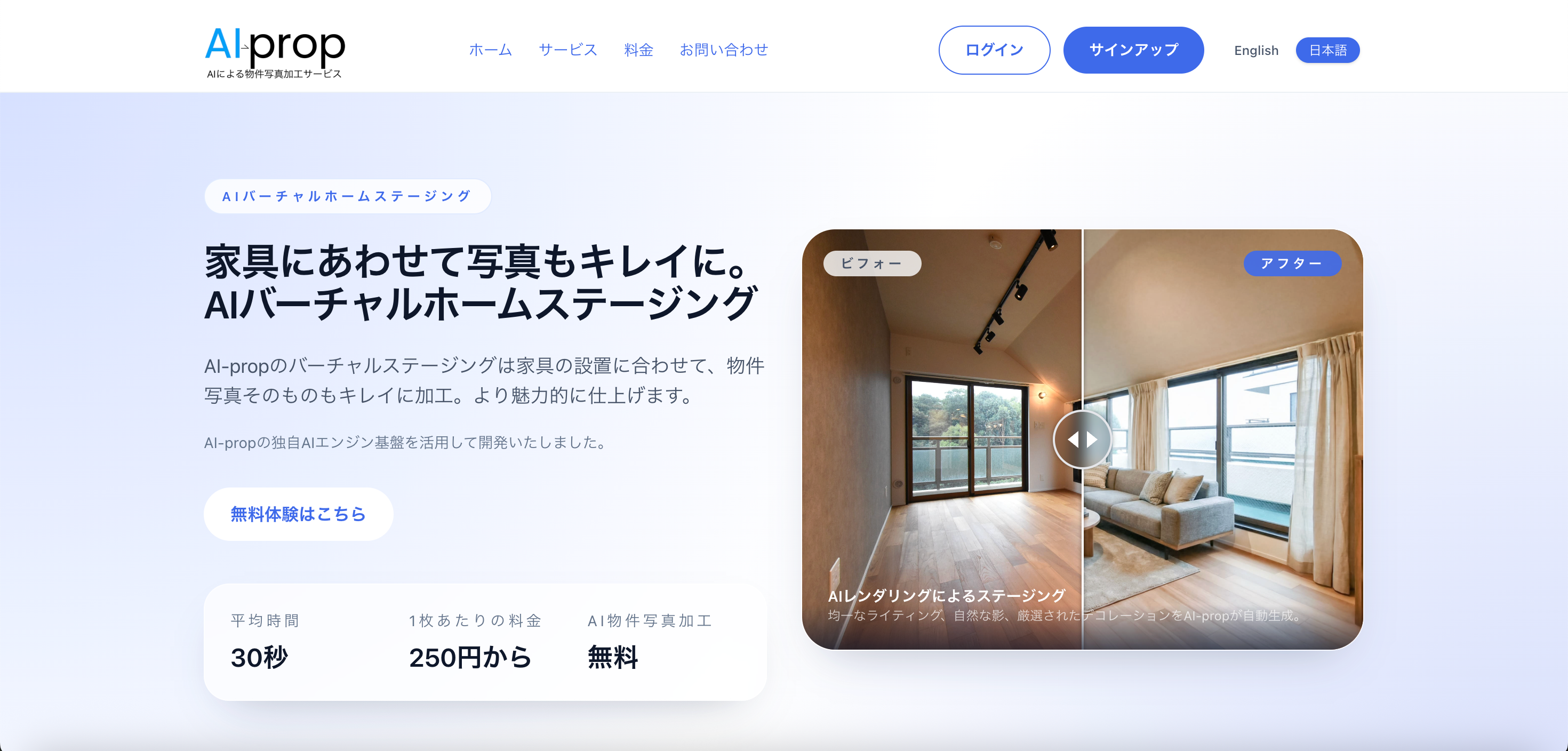 AI-propのAIバーチャルホームステージングと不要物の除去サービスをまずはぜひお試しください。