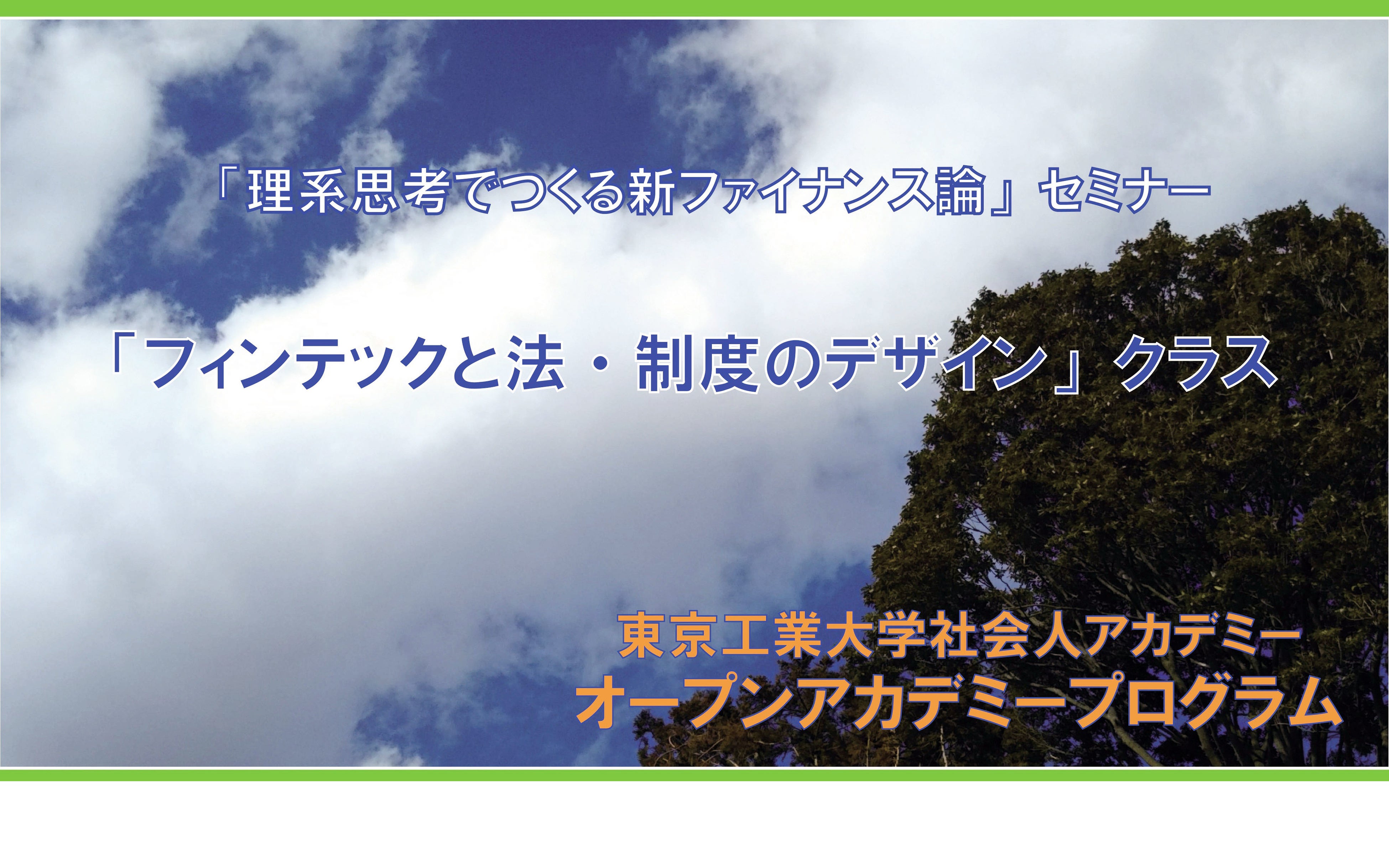 対象者:フィンテック、および、フィンテックに関わる法と制度のデザインの実務者担当者、あるいは、これらに興味を持つ一般社会人