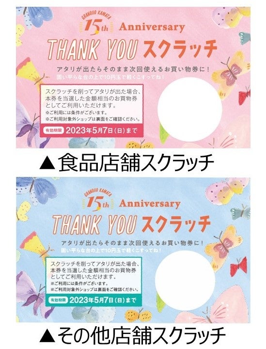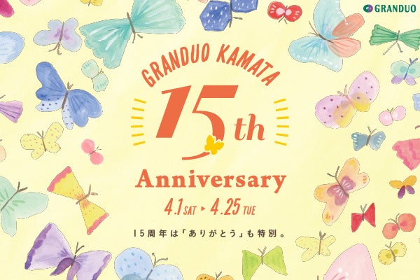 ジェイアール東日本商業開発株式会社(本社:東京都立川市、代表取締役社長:小沼 智子)が運営する商業施設グランデュオ蒲田は、2023年4月16日(日)に開業15周年を迎えます。一人一人の出会いに感謝の気持ちを込めて、グランデュオ蒲田では、4月1日(土)から4月25日(火)まで<GRANDUO KAMATA 15th Anniversary 15周年は「ありがとう」も特別。>を開催いたします。