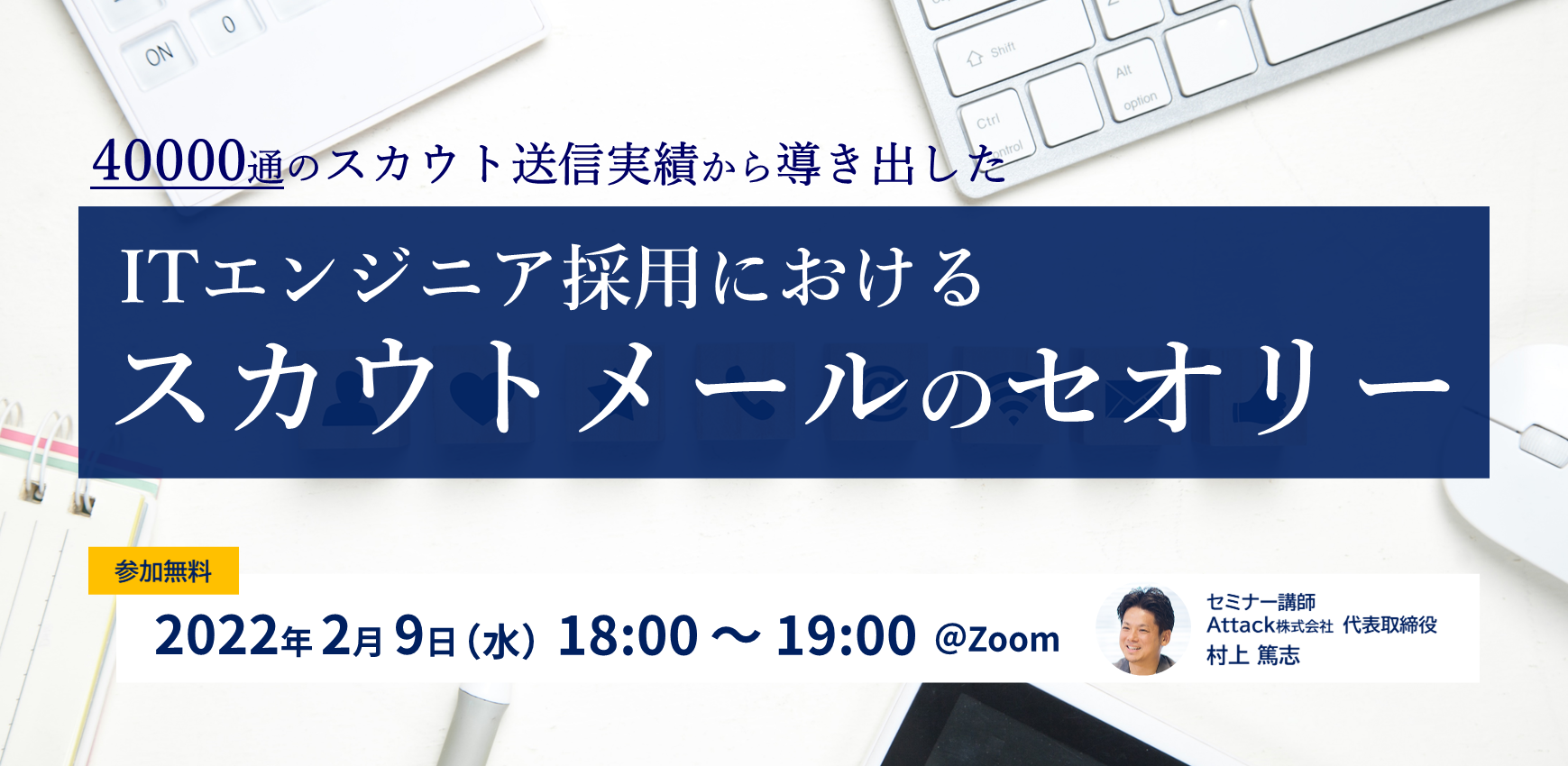 【受講無料】40000通のスカウト送信実績から導き出した『エンジニア採用におけるスカウトメールのセオリー』2/9(水)オンラインセミナー開催
