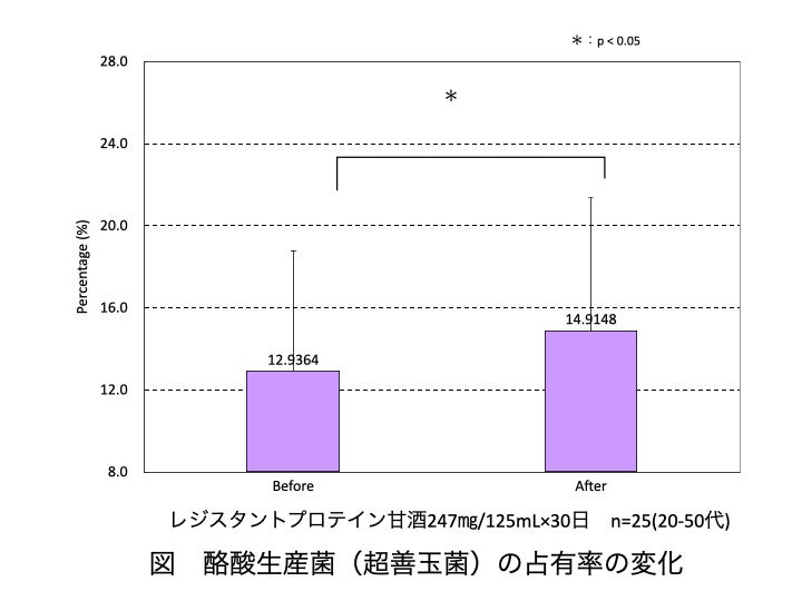 1カ月の飲用で腸内細菌の酪酸生産菌占有率が