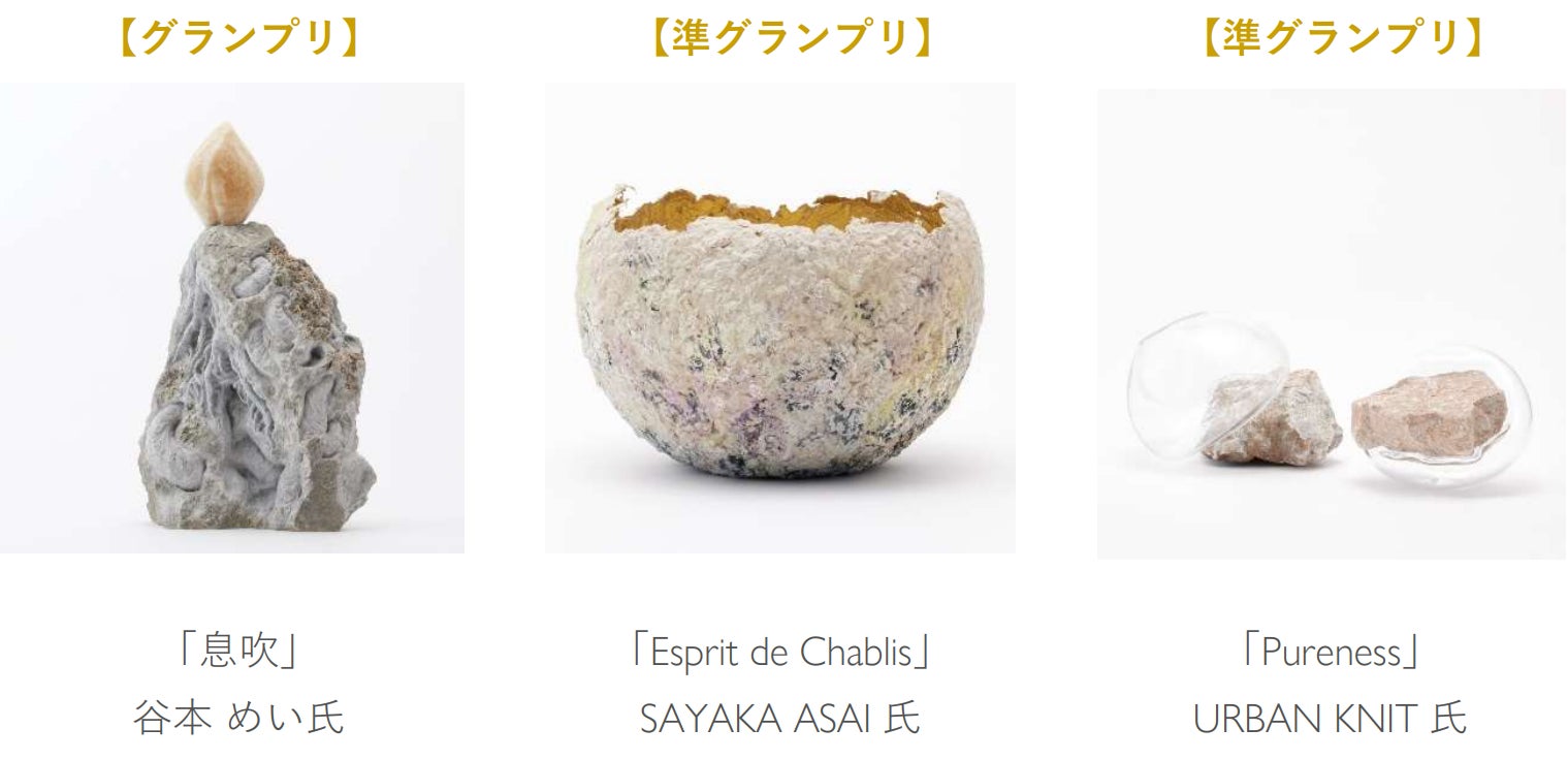 日本のアーティストの方々から寄せられた、シャブリワイン特有の『ピュアネス』をテーマとした立体アート作品の中から、グランプリ1点(賞金30万円)、準グランプリ2点(賞金5万円)が選出されました。