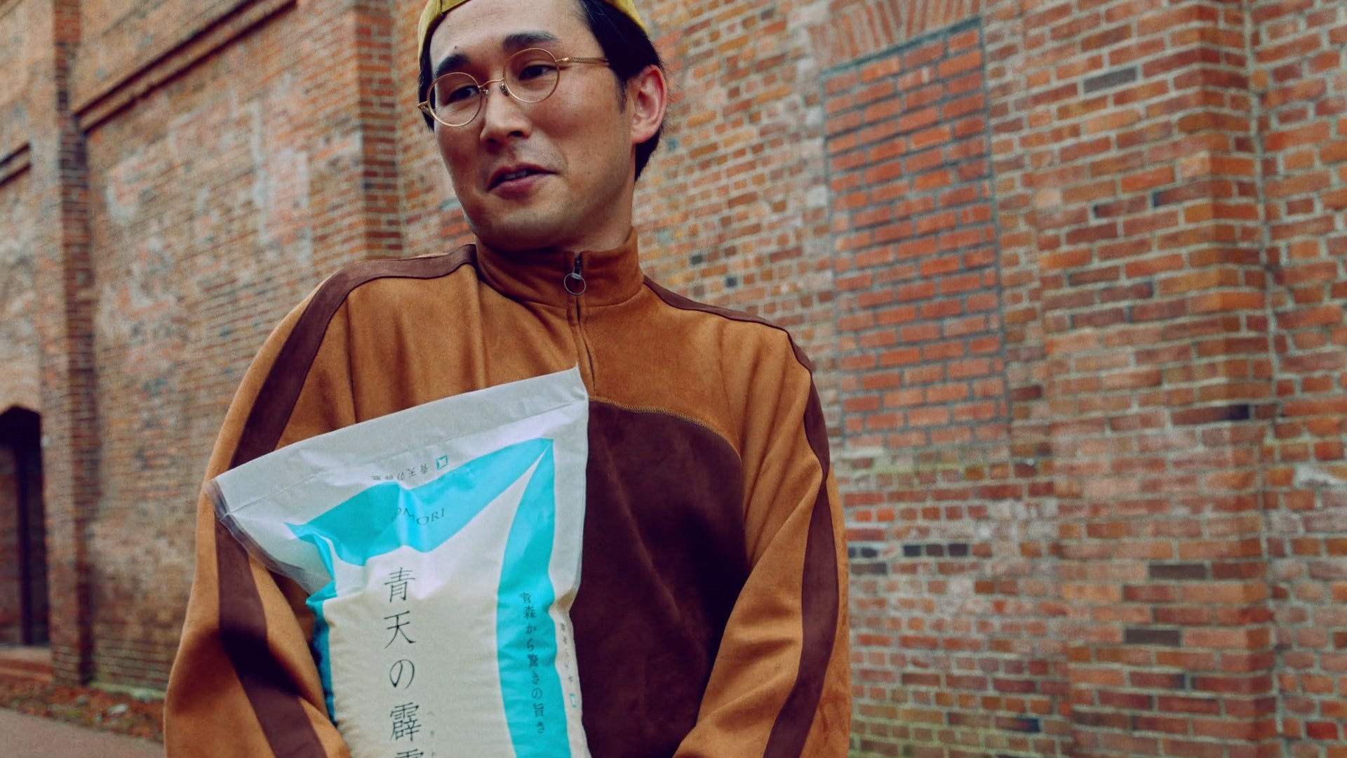 今年の「青天の霹靂」のテーマは「お米を買って帰ろう」。スタイリッシュなパッケージの「青天の霹靂」ならではの、“米袋”と“ファッション”という一見かけ離れた要素を掛け合わせています。そして昨年に引き続き、じろうさん出演による「インタビュー~猪俣ヒロシの場合~」篇、「独白~野呂道子の場合~」篇、「再会~工藤訓一の場合~」篇の3種類のWEBムービーを公開します。今回はじろうさんの出身地である青森県の弘前市において撮影を行い、思い出が詰まった場所で、青森のシティボーイ・シティガールのキャラクターを津軽弁で演じます。じろうさん演じる“おしゃれだけど、ちょっとクセのある若者”たちが、米袋を片手に登場して語り、おむすびを美味しそうに頬張ります。